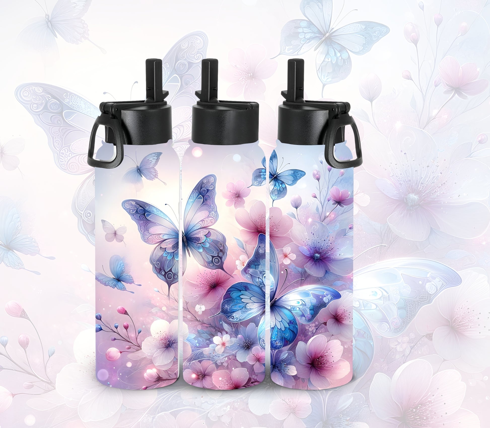 Stay hydrated in style with these 22oz Blue Butterflys featuring sleek black lids. Perfectly sized for your daily adventures, they keep your drinks secure and spill-free. Add your own unique touch and make every sip a statement!
