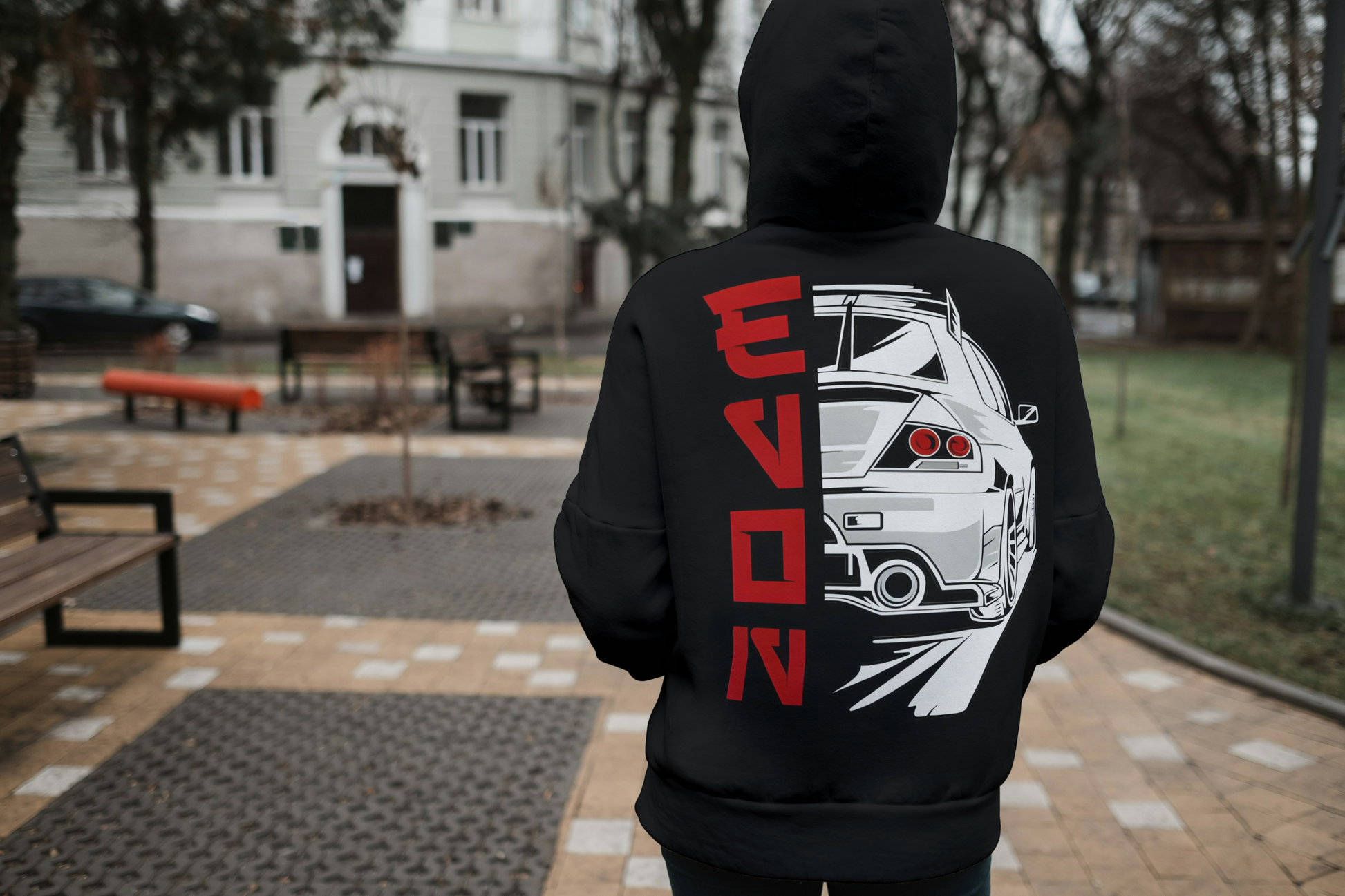 Get ready to turn heads in the EVO black jumper, featuring a cool car evo graphic on the back. Perfect for those who love a mix of style and sustainability vibes, this jumper adds a playful edge to your casual wardrobe while keeping you cozy and comfortable. Whether you're out for a drive or just hanging out, EVO keeps it fun and fresh.