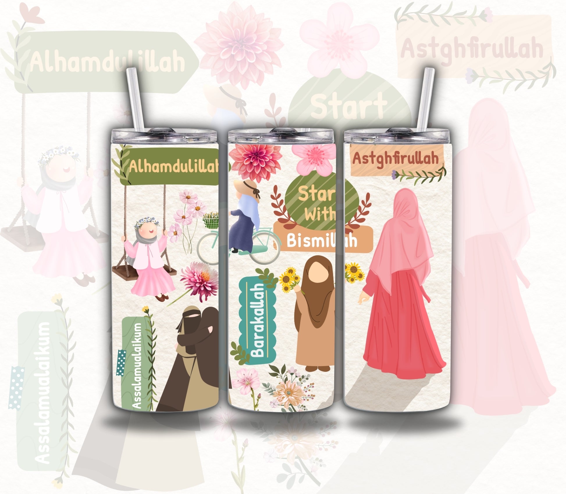 Get ready to sip in style with our Start With Bismillah . This custom tumbler is perfect for keeping your drinks at the desired temperature while also showcasing your unique sense of style. It's the perfect partner for your everyday adventures.